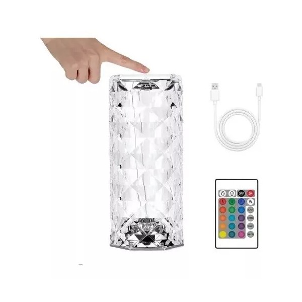 Rose Lampara Diamond 3d Buro Mesa Táctil Led Multicolor Rgb