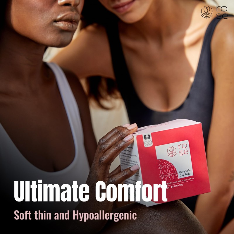 - Perfect Fit and Highly Flexible: ROSE pads are Ultra-thin, for maximum discreteness and comfort. contain an Adhesive strip and wings for a secure long lasting fit. For all woman, skin types and menstrual conditions.