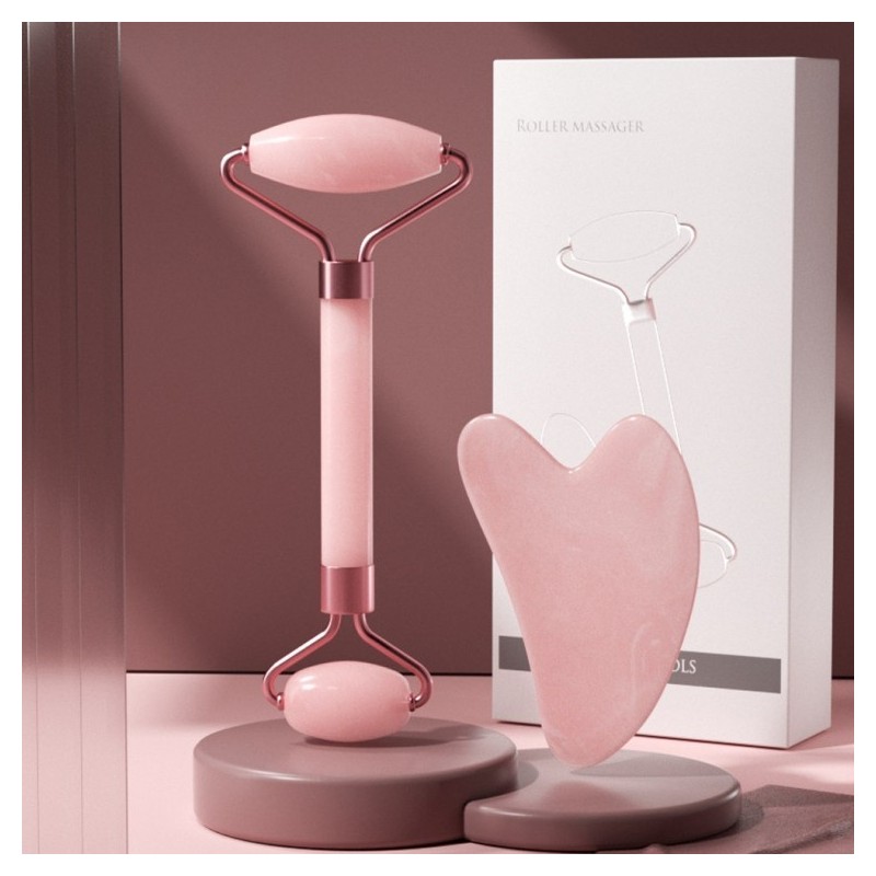 Rose Quartz Gua Sha Face Massage Set with Heart Roller Gua Sha Roller Set 2ea