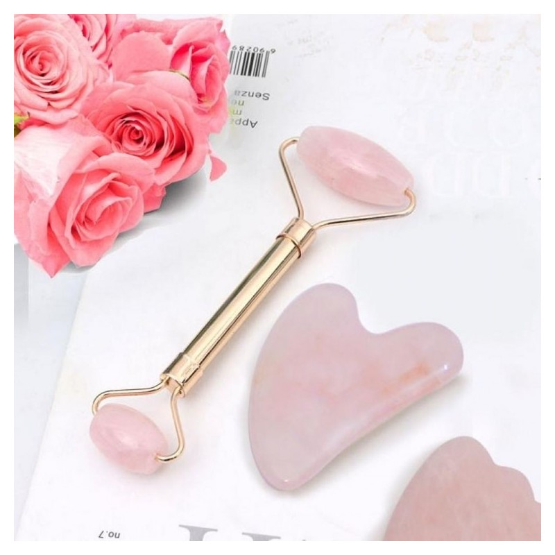 Rose Quartz Gua Sha Face Massage Tool Roller Stick Face Heart