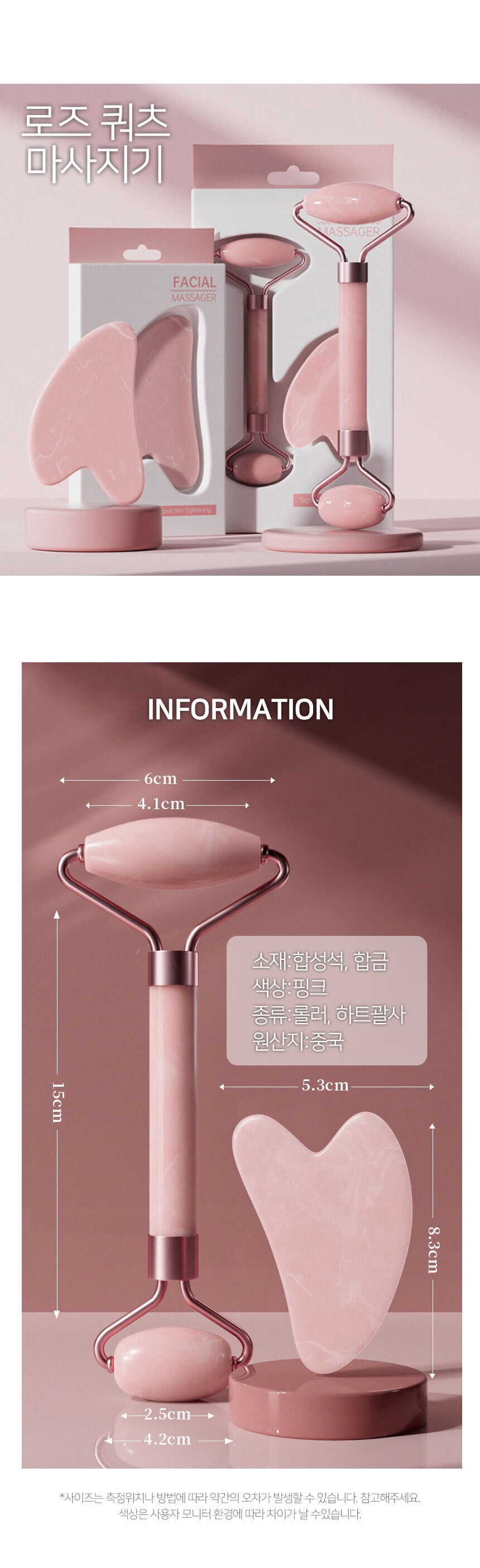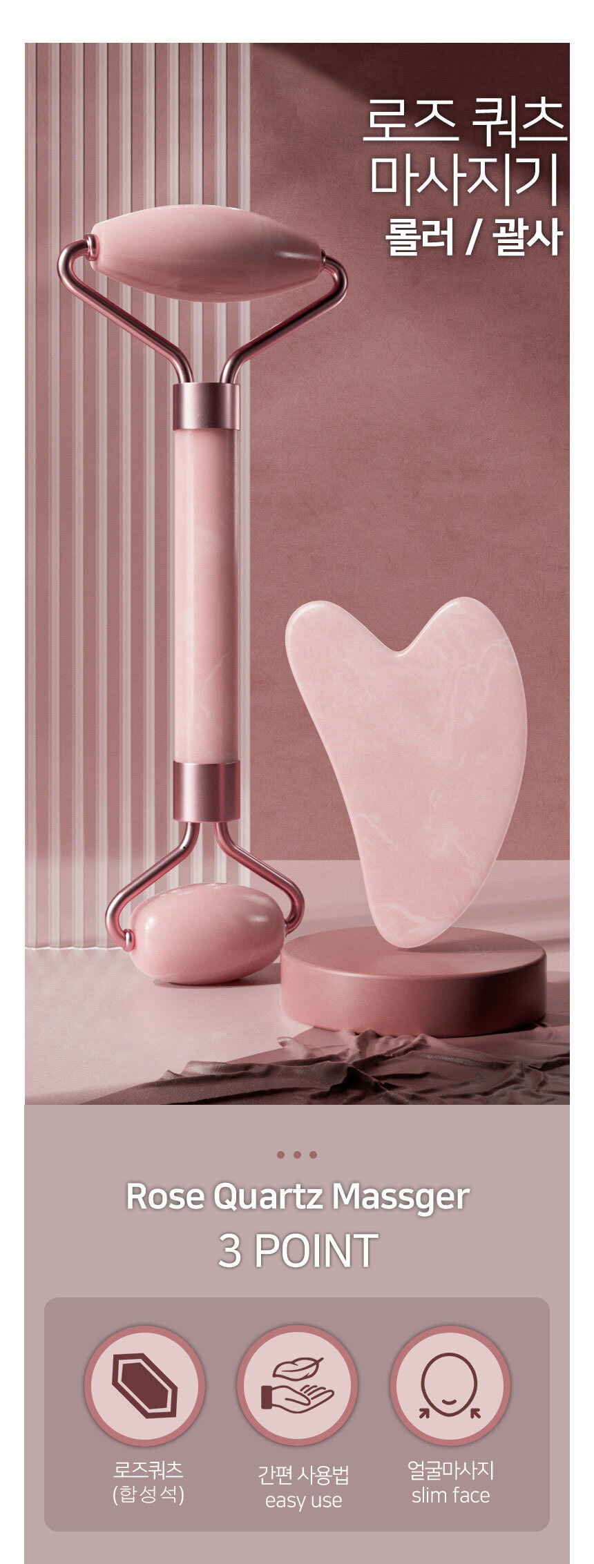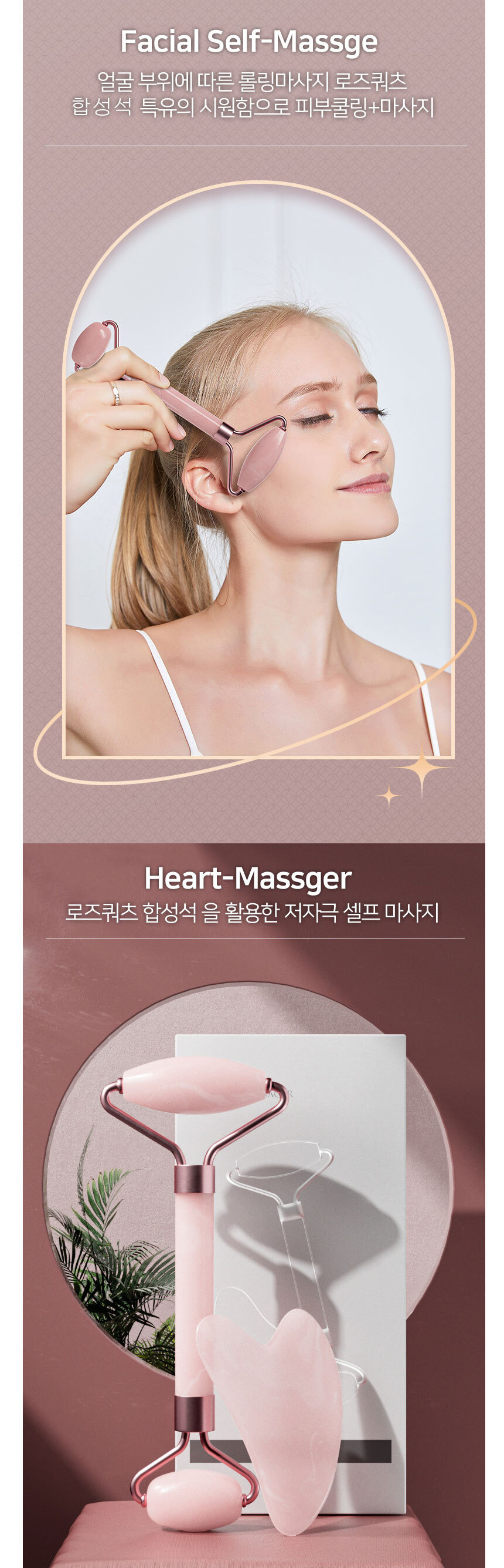 로즈쿼츠 괄사 마사지 하트 롤러 얼굴 마사지 세트 - 괄사롤러세트