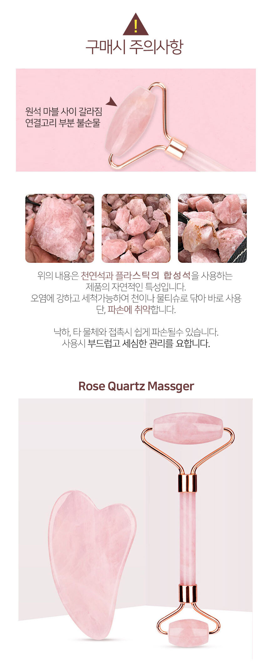 Rose Quartz Gua Sha Massage Heart Roller Facial Massage Set - Gua Sha Roller Set / 로즈쿼츠 괄사 마사지 하트 롤러 얼굴 마사지 세트 - 괄사롤러세트