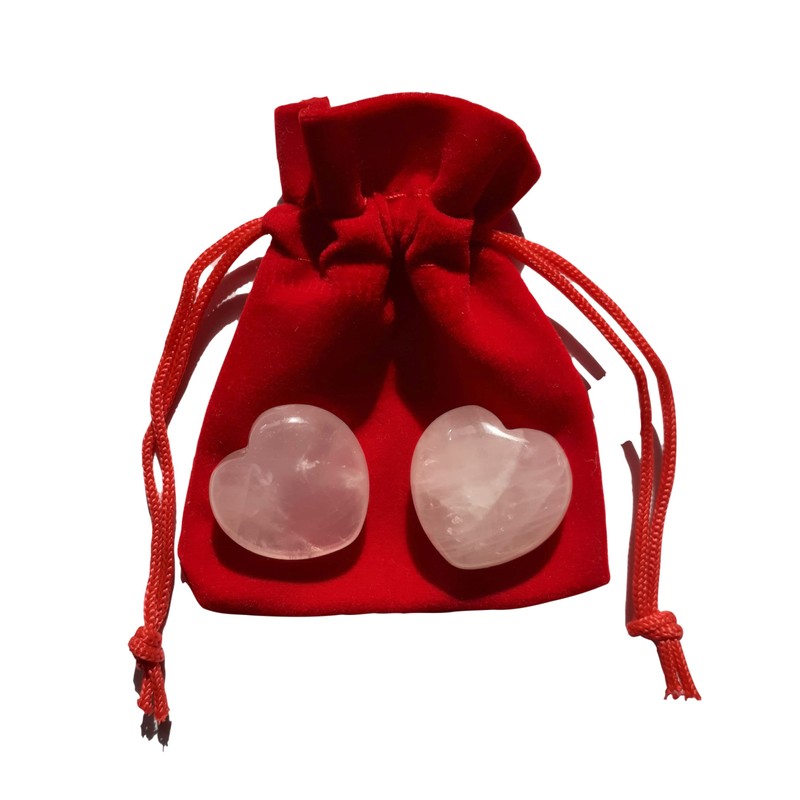 - Pack includes: 2 x Rose Quartz Hearts (size approx 2cm) in a red velvet gift bag