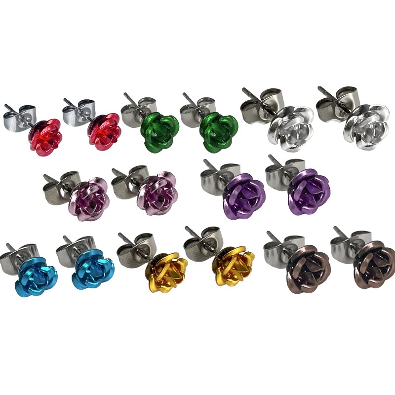 Rose Rose Earrings, 8 Colors, Binaural (2 Pieces) Studs for Men and Women, Stainless Steel, Black, Silver Accessories, Stainless Steel