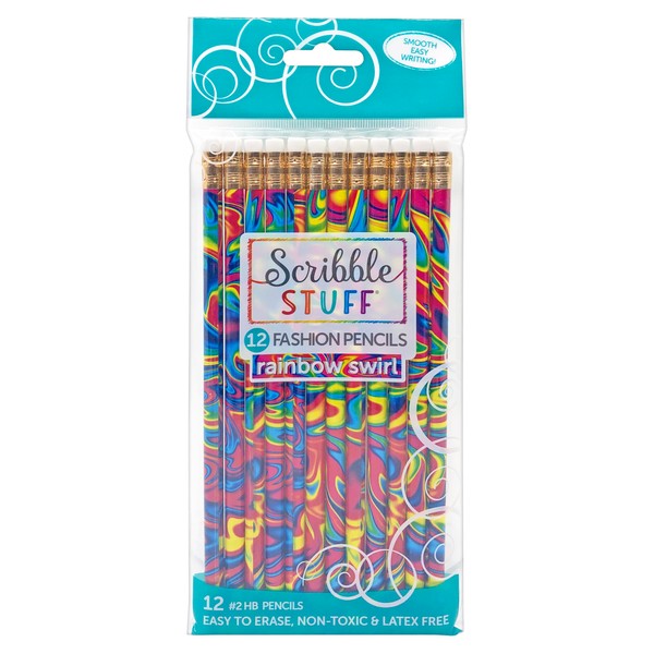Scribble Stuff Fashion Pencil Pack, Rainbow Swirl Edition, Unsharpened, Back To School Pencils, 12 Count