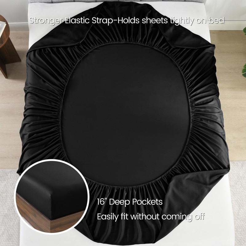 - Queen Bed Sheets Set - Including 1 flat sheet 90"x102",2 pillowcase 20"x30",1 fitted sheet 60"x80"+16" , it was designed to fit almost all mattress up to the depth of 16" and the all around elasticity design which will let it stays in its place and doesn’t come off.