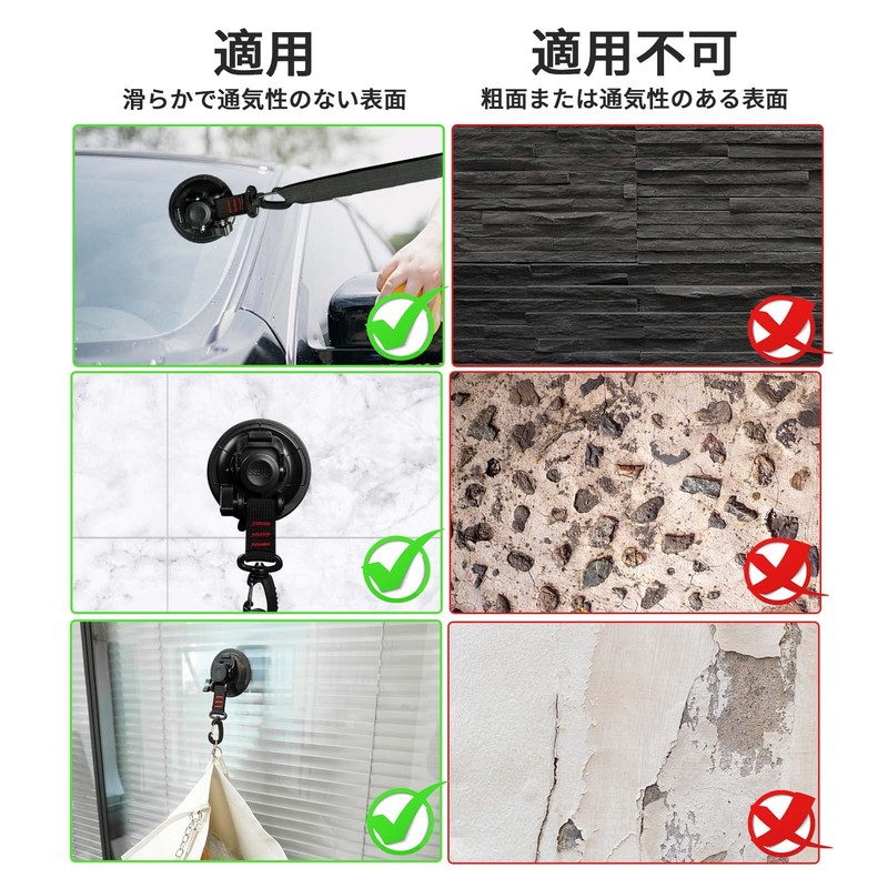 • 【Multi-Purpose】Suction hooks are a great way to secure most items. No more worries about when it falls. Not only can it be used as a car side tarp or sunshade fixed, but also can be used for indoor and outdoor use, as well as temporary item hook for car camping and travel. Great for outdoors, but can also be used at home as a bathroom or kitchen hook