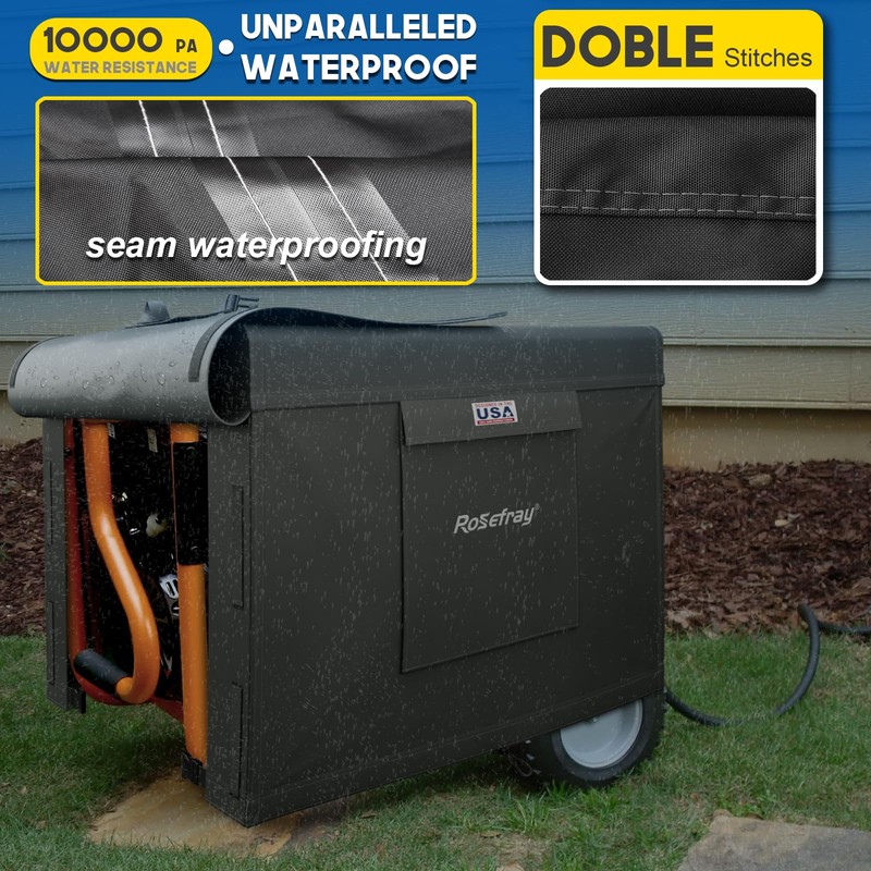 Rosefray Generator Cover-32”Lx24”Wx24”H,600D Heavy Duty Waterproof, Small Outside Equipment Cover for Champion,Predator,WEN,Ryobi,Generac,Westinghouse Portable Generator 5000-10000W-Black/2XL