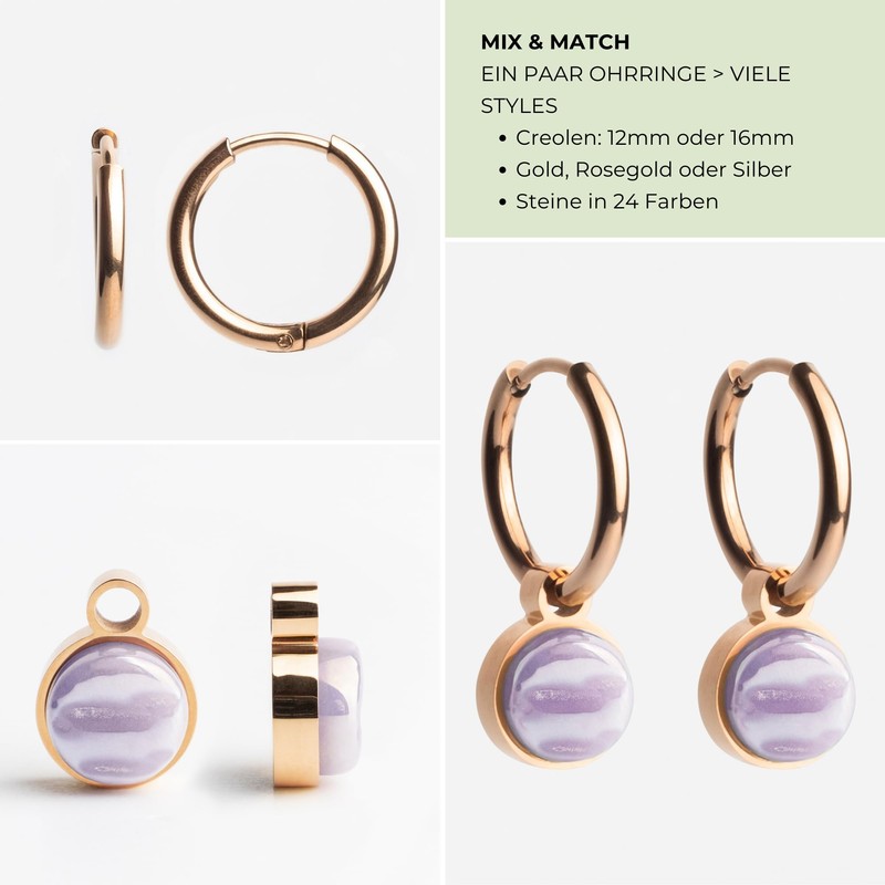 - 💜 VIELFÄLTIG: Wähle aus silber, gold oder rotgold sowie 20 schimmernden Steinfarben. Und wenn Du mehr Abwechslung brauchst, kannst Du bei uns Anhänger für Creolen paarweise nachkaufen.