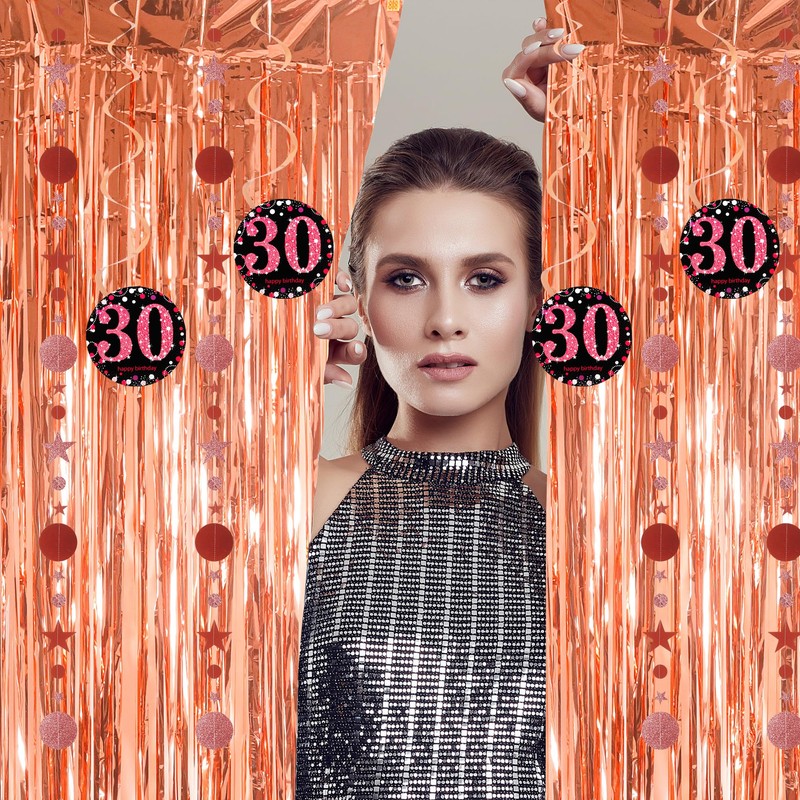 Rosegold Tinsel Backdrop for 50th Birthday Party - Hanging Swirls and Curtain Streamers Decorations for Her Women
