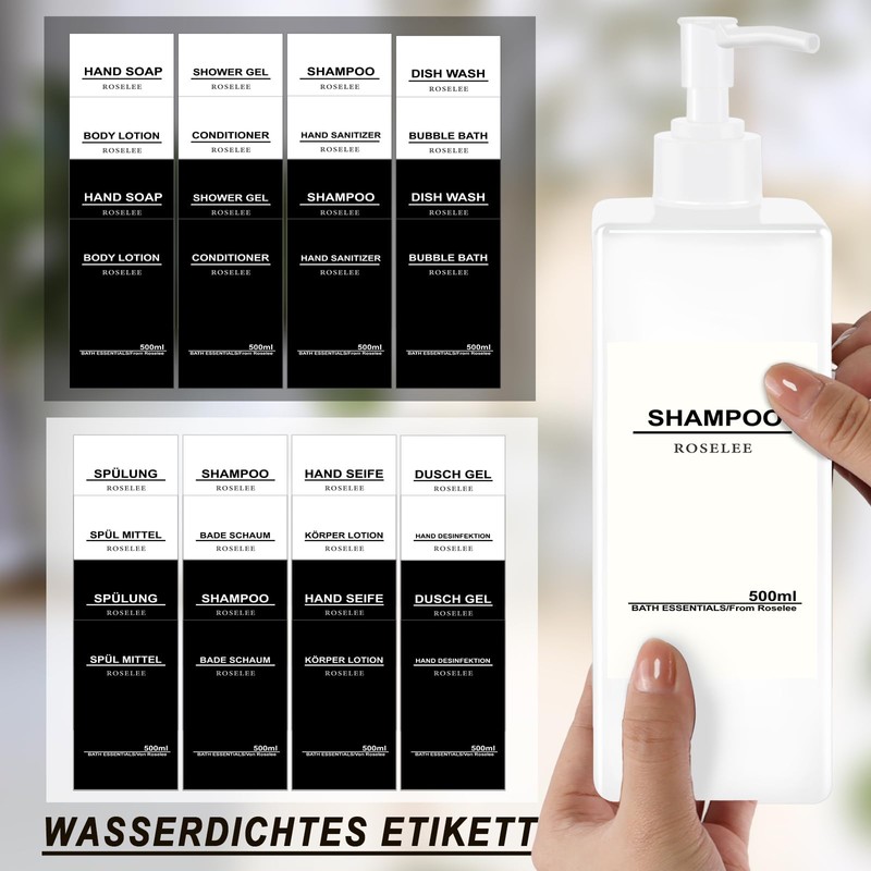 • Simple and elegant design: 3 in 1 soap dispenser wall mount with 3 dispenser containers, simple and elegant appearance, black frosted pump and white writing labels to beautify your soap bottle, contains two different sets of 16 waterproof labels to meet your different preferences, you can organise your bathroom and kitchen in your own way to make it more beautiful and tidy.