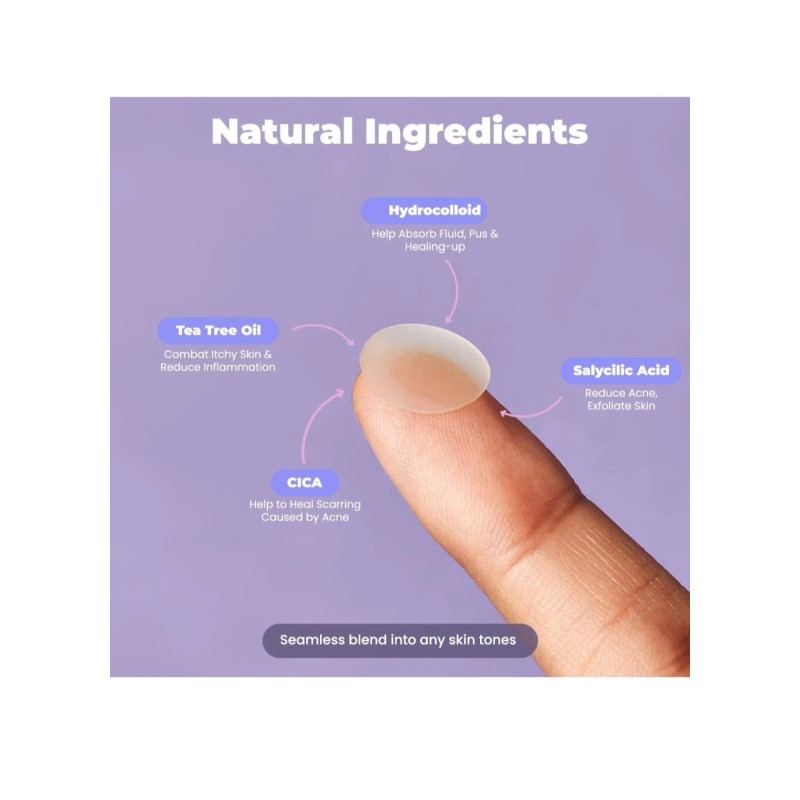 - Ingredients: Hydrocolloid,Salicylic Acid,Tea Tree Oil,CICA