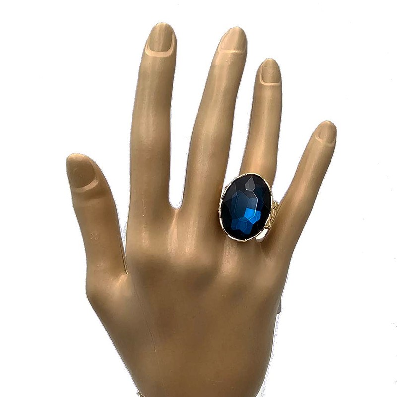 Rosemarie & Jubalee Women's Statement Oval Crystal Stretch Cocktail Ring (Gold Tone Peacock Blue)
