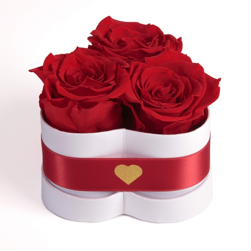 - Heart shaped rose box with 3 red infinity roses and gold lettering Ti Amo. Whether as a gift for Valentine's Day or declaration of love, give your pet a special gift with eternal roses