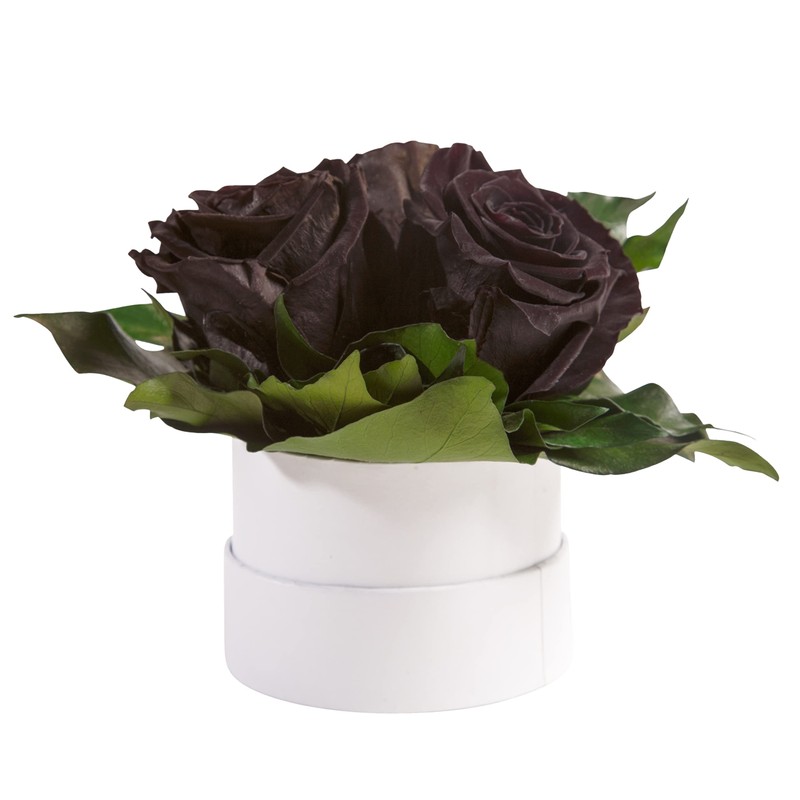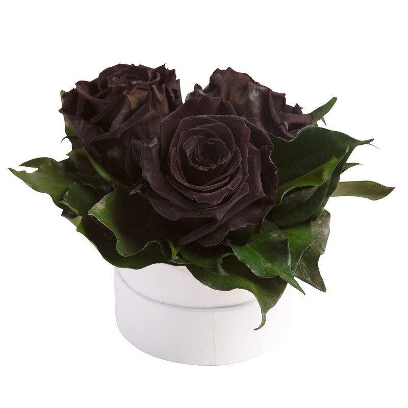 - Round rose box with satin ribbon, 3 black infinity roses and scented with rose fragrance. Whether as a gift for women's day, birthday, for a thank you or Mother's Day, this rose bouquet is the best way to give a special flower gift to a loved one