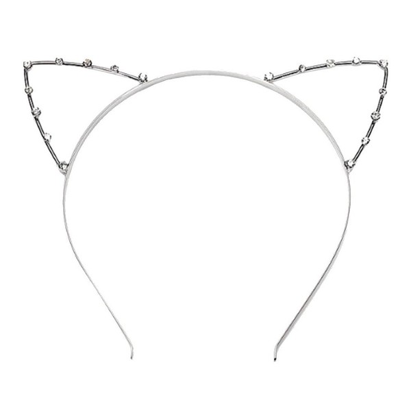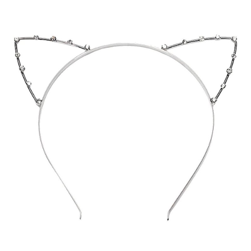 1 x cute rhinestone alice band with cat ears for fancy dress party (silver).