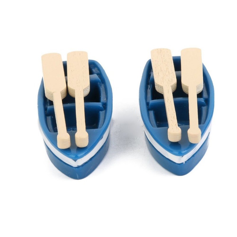 This item is 2 sets of mini boats and quants, which is made of resin and wood. It's very cute boat and quant, suitable for moss micro landscape, suitable with small decorative gardening.