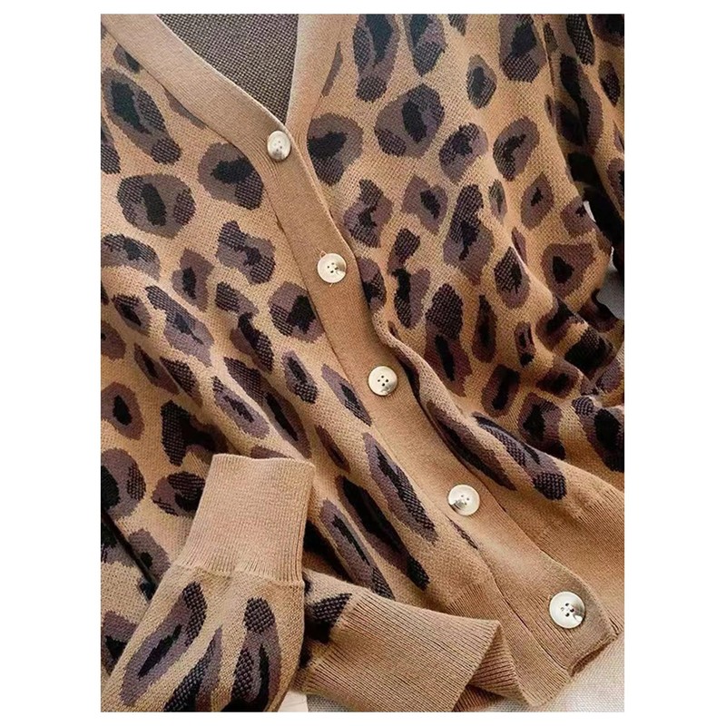 RoseSeek Women's Leopard Button Downs Cardigan V Neck Long Sleeve Knit Sweater Casual Fall Outwear Brown Medium