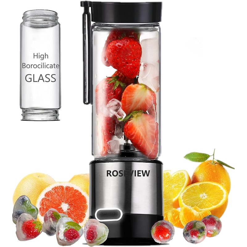 ROSEVIEW Portable Smoothie blender ROSEVIEW Glass bottle USB rechargeable min...