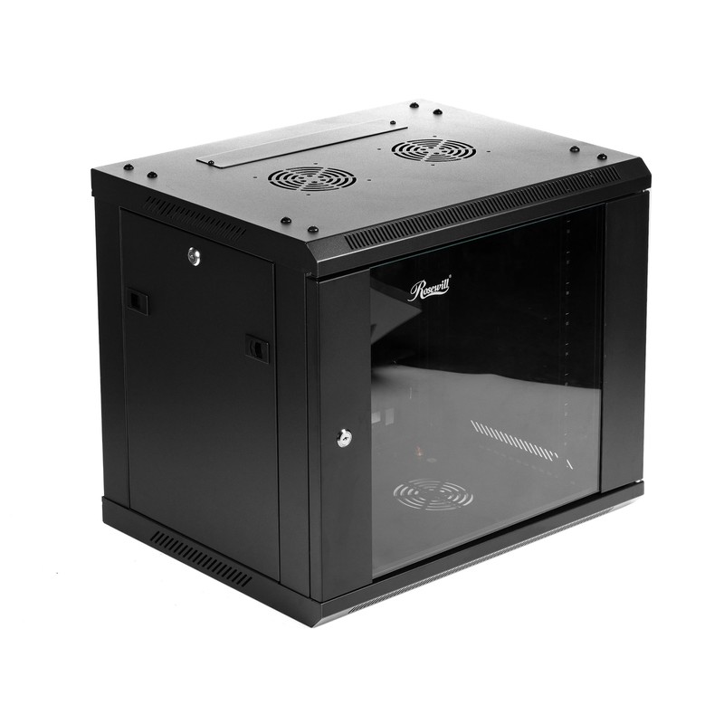 Rosewill 9U Server Rack Enclosure with Glass Door, Locks, & Removable Side Panels Wall Mount Network Cabinet 19 Inch Rack 17.7 Inches Deep Flat-Pack