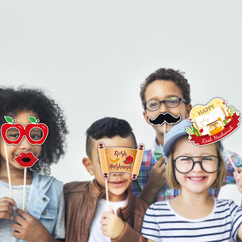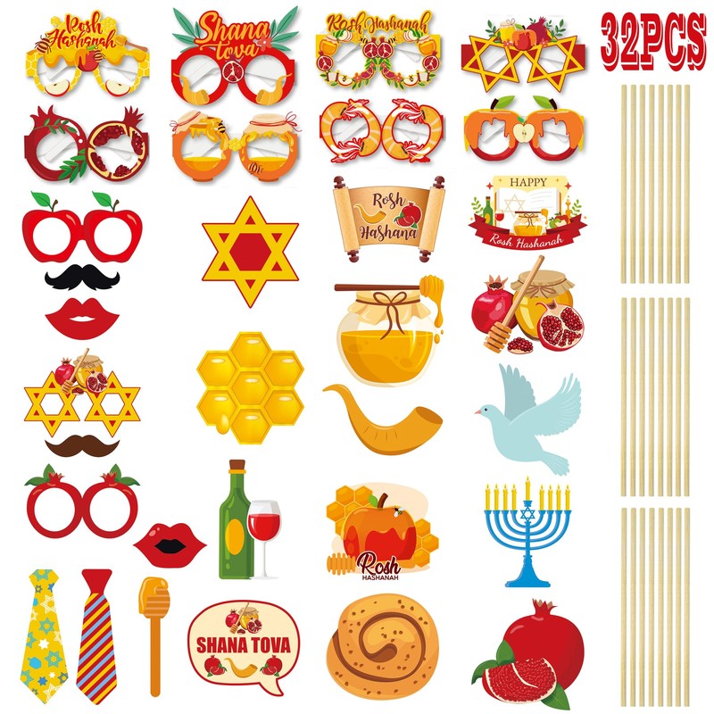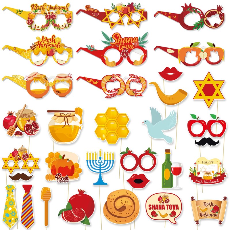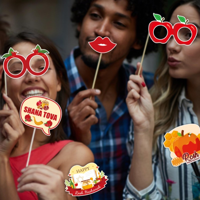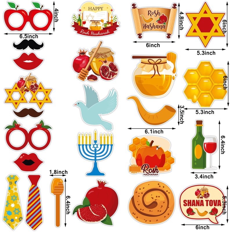 - Rosh Hashanah Photo Booth Props includes 24 packs Shana Tova Jewish New Year shaped cardboard cut outs photo booth props party supplies in 24 different styles, and those Shana Tova photo booth props are easy assembly with glue dot and wood sticks.