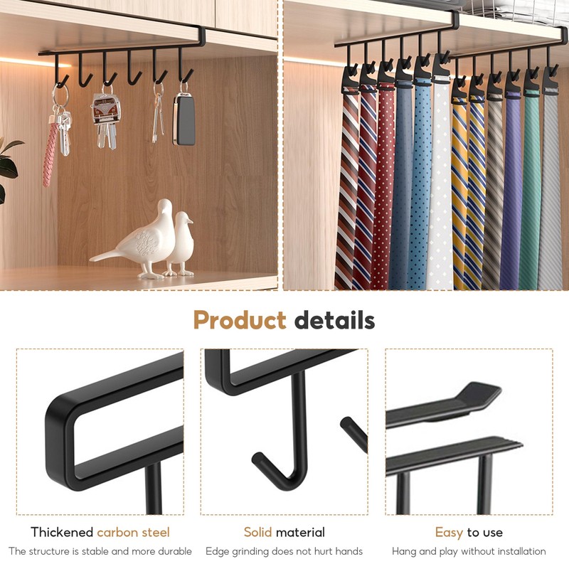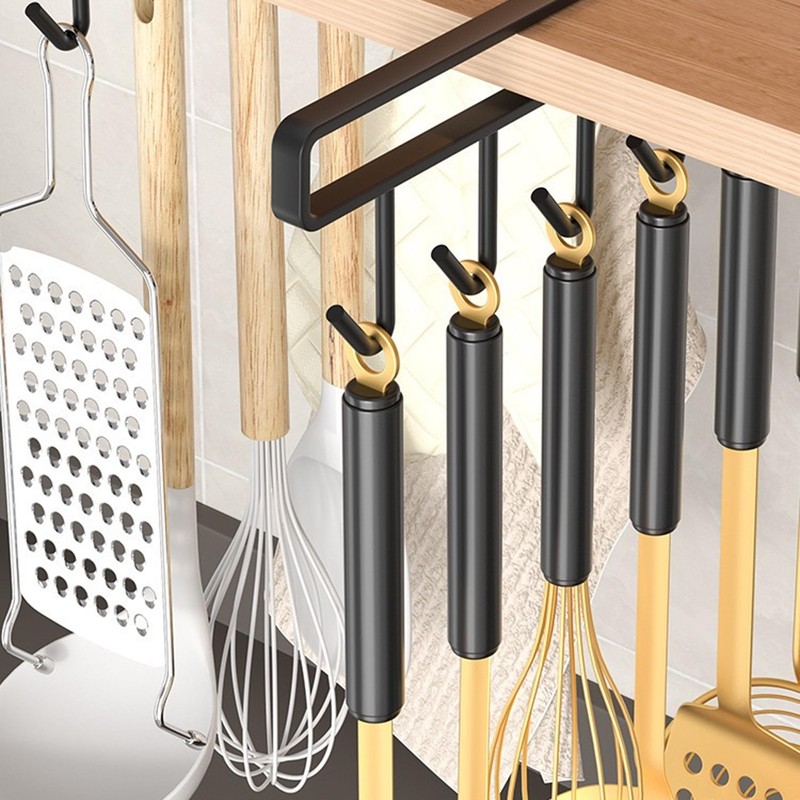 Roshoitle Under Cabinet Kitchen Hooks for Hanging Utensils - No Drill No Adhesive Heavy Duty Utensil Holder, Under Cabinet Mug Hooks for Mugs, Spoons & Kitchen Tools (1 Pack)