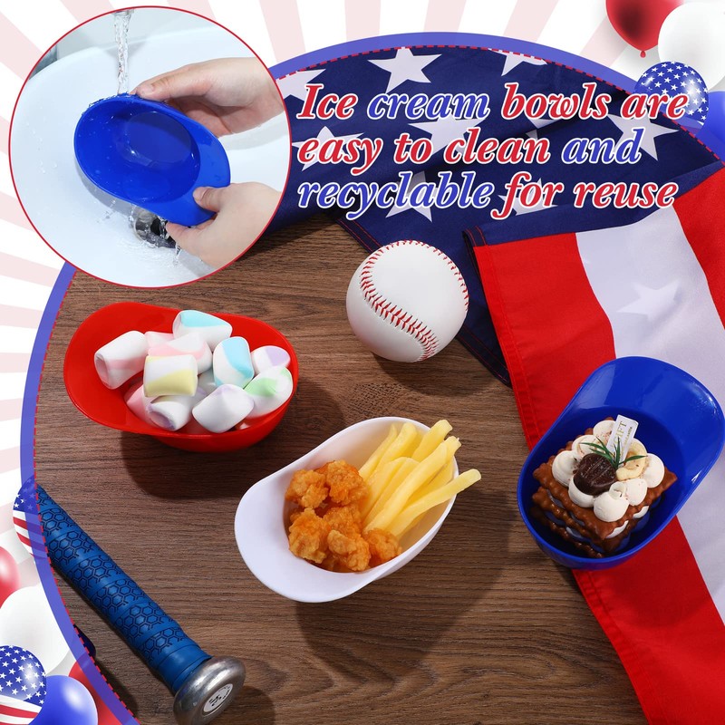 - Value Pack: you will receive 180 pcs baseball helmet ice cream snack bowls, designed in 3 different colors, blue, red and white, 60 pcs for each color, sufficient quantity can easily meet the needs of use and replacement