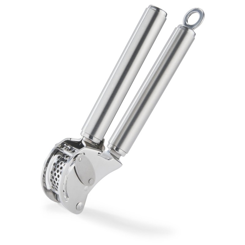 - Easier to crush garlic because weighted handles provide added leverage. Precision hinges allow force to be applied efficiently to the garlic.