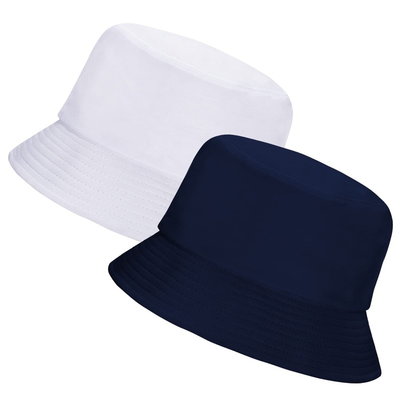 Rosoz 1 & 2 Pack Bucket Hat for Women Men Summer Travel Beach Sun Hat Outdoor Cap Unisex Bucket Hats, 2pack-white/Navy, 7 1/8-7 1/4
