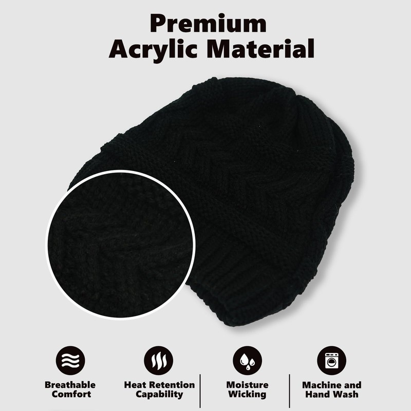 - Material--This awesomely unique and versatile beanie cap is 100% acrylic with a durable and stretchy elastic band to adjust to any size or style of hair. Machine wash on a cold, delicate cycle and hang to dry.