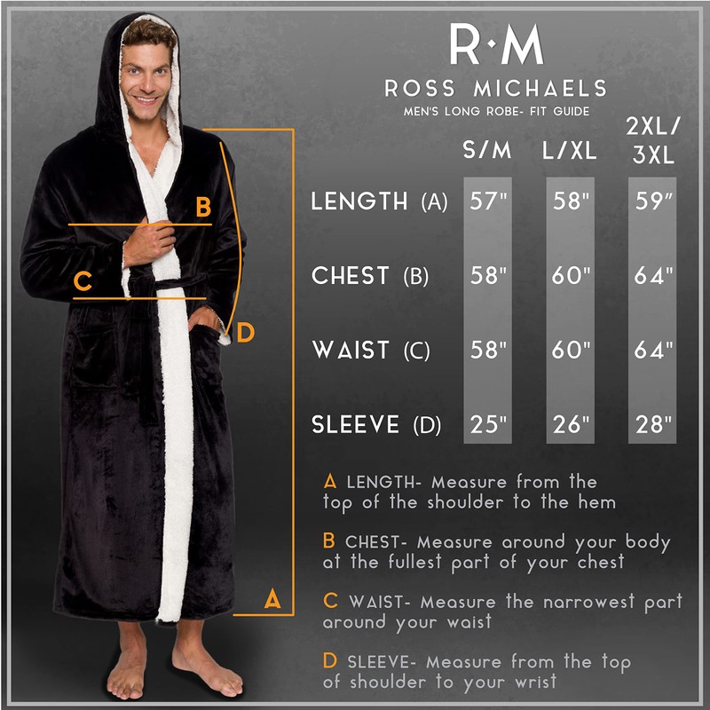 - FULL LENGTH DESIGN - Get the perfect robe in the length you desire! Our full-length robes range between 55" to 59" in length. These Ross Michaels Robes are designed to be full length for complete coverage and ultimate comfort.