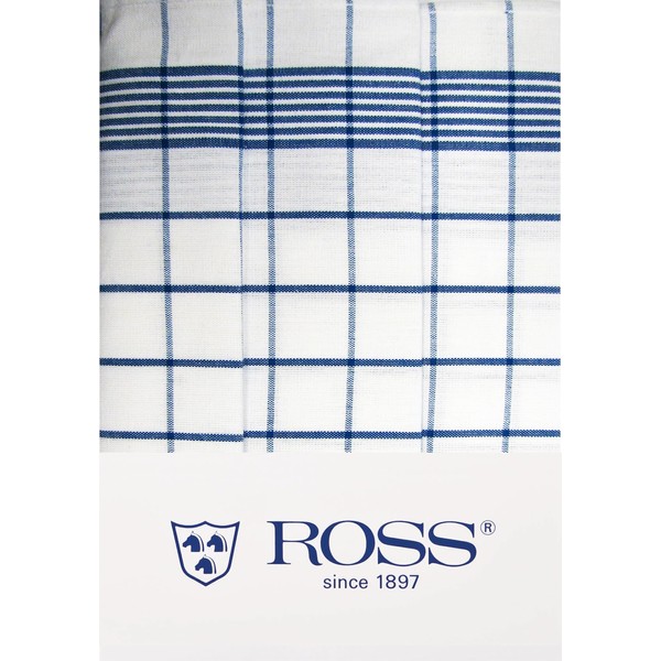 Ross Pack of 3 Cotton Tea Towels Checked 1704 Blue 50 x 70 cm