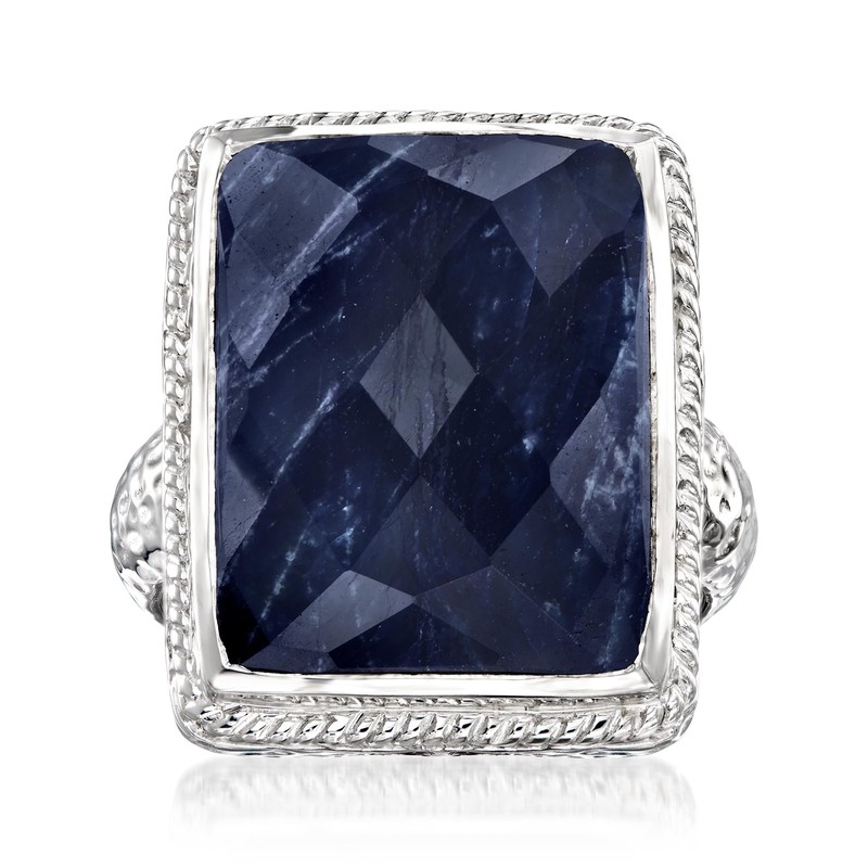 Ross-Simons 17.00 Carat Sapphire Roped-Edge Ring in Sterling Silver. Size 9