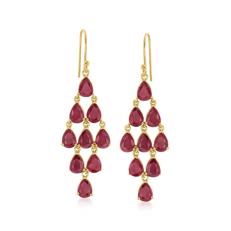- 18kt yellow gold over sterling silver, ruby earrings for women.