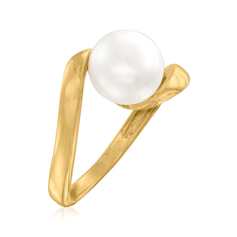 Ross-Simons Italian 9-9.5mm Cultured Pearl Twisted Ring in 18kt Gold Over Sterling. Size 5