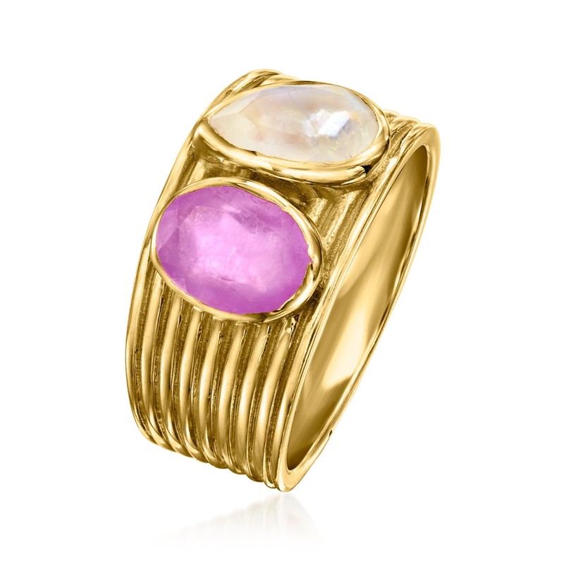 Ross-Simons Moonstone and 1.00 Carat Purple Quartz Toi Et Moi Ring in 18kt Gold Over Sterling. Size 8