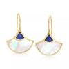 Ross-Simons Mother-Of-Pearl and Lapis Fan Drop Earrings in 18kt Gold Over Sterling