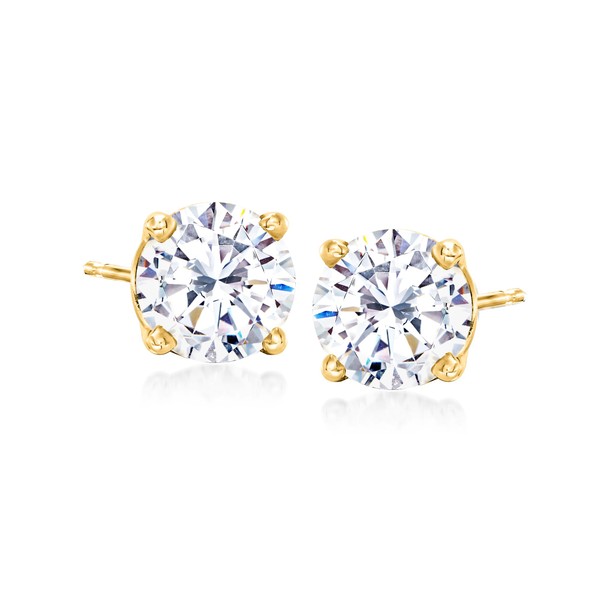 A trusted jeweler in 1952, Ross-Simons is dedicated to quality and value. Large and luxe, yet so affordable. These 3.00 ct. t.w. round brilliant-cut CZ stud earrings are sized for high impact, set in 18kt yellow gold. Post/clutch, CZ stud earrings. CZ weights are diamond equivalents.
