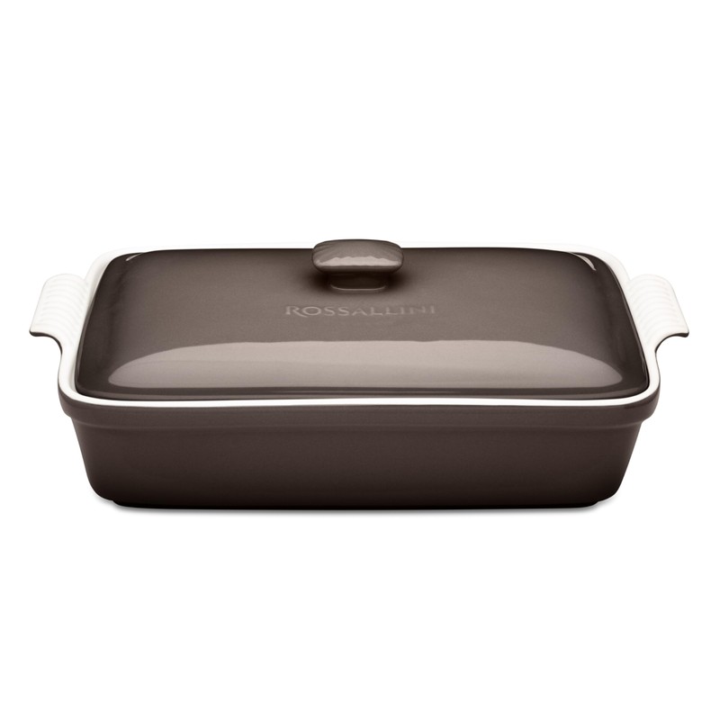 ROSSALLINI Stoneware Casserole Dish Bakeware Set with Lid, Covered Rectangular Dinnerware, Extra Large 4.23 Quart, 13 by 9 Inch, Oyster