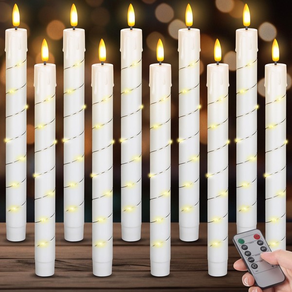 Rossesay 10 Pcs Flameless Window Candle with Built in String Light LED Battery Powered Candle with Remote Control 10 Inch Flameless Candlesticks for Wedding Christmas Home Decoration