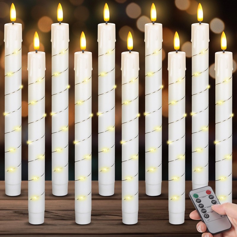 - Complete Package: the flickering flameless candles have10 candles with 2 timer remote control; The candle diameter is 2.15cm, suit for a variety of candle holders; These candles will effortlessly complement your holiday decorations, enhance centerpieces