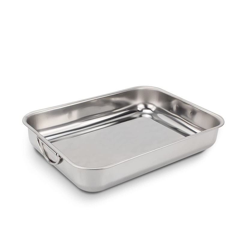 ROSSETTO Casserole Dish Stainless Steel Rectangular Large Baking Dish with Folding Handles Rustproof 35 cm x 26 cm Dishwasher Safe
