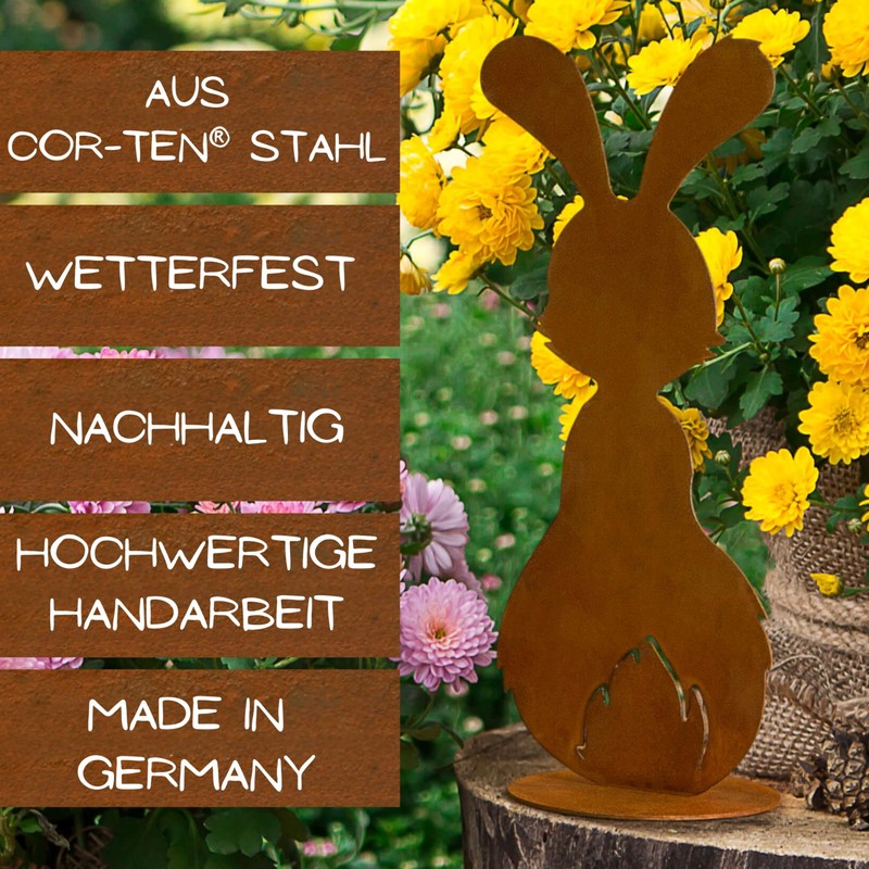 - Creatively design yourself - The smooth Corten steel surface provides perfect conditions to paint and personalise the rabbit. A DIY project for a very individual Easter decoration