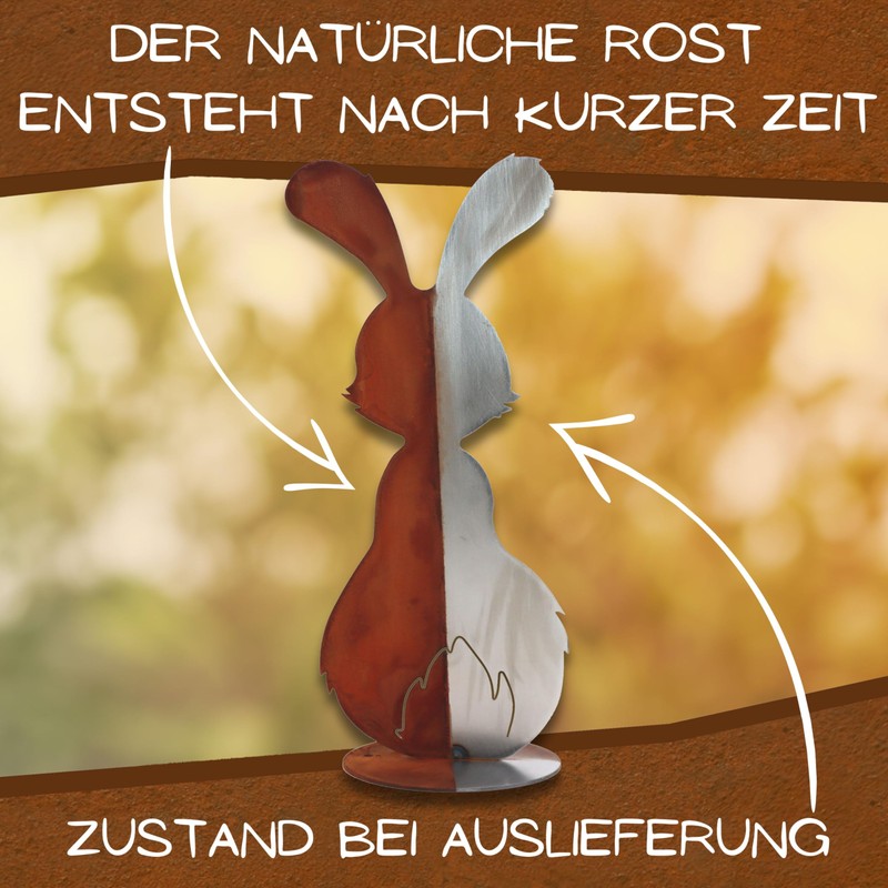 - Natural rust is created - Made of bare metal and delivered, the rabbit begins to rust. Within a short time, an individual rust look develops that is always unique