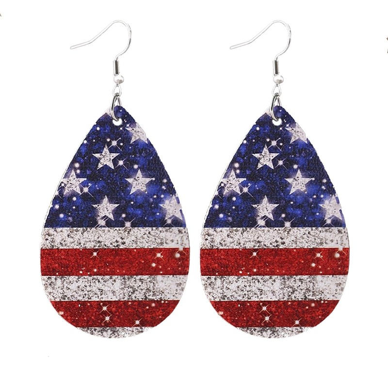 ROSTIVO American Flag Earrings for Women 4th of July Patriotic Earrings Cute Teardrop Leather Dangle Earrings for Holiday