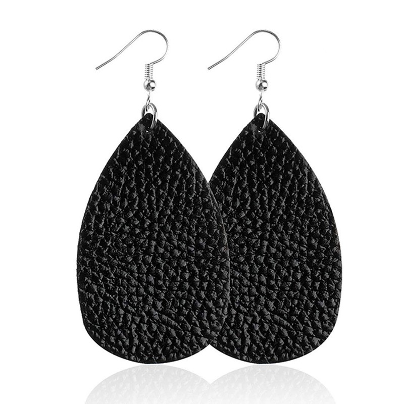 ROSTIVO Leather Earrings for Women Teardrop Leather Earrings Simple Dangle Earrings (Black)