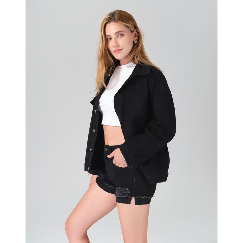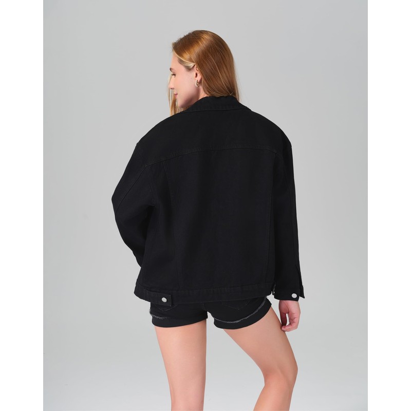 roswear Denim Jacket Coat for Women with Flap Chest Pockets Casual Oversized Jean Jackets Black X-Large