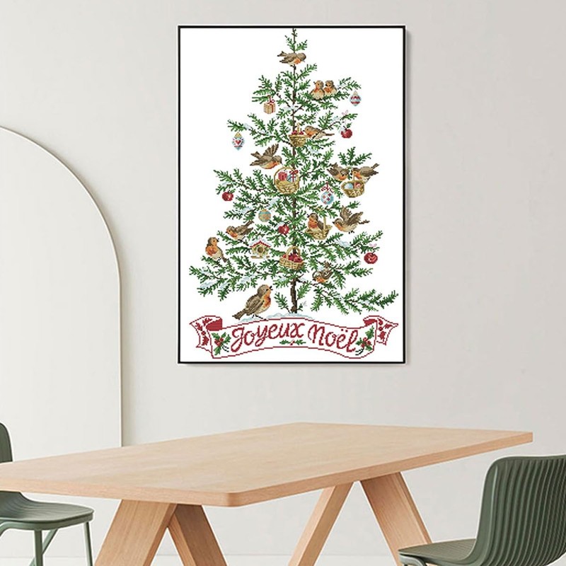 Rosyfoxes Cross Stitch Kits Stamped Full Range of Embroidery Starter Kits for Adult DIY 14CT 2 Strands -Printed kit The Christmas Tree with Birds (Printed) 18.1×25.2inches