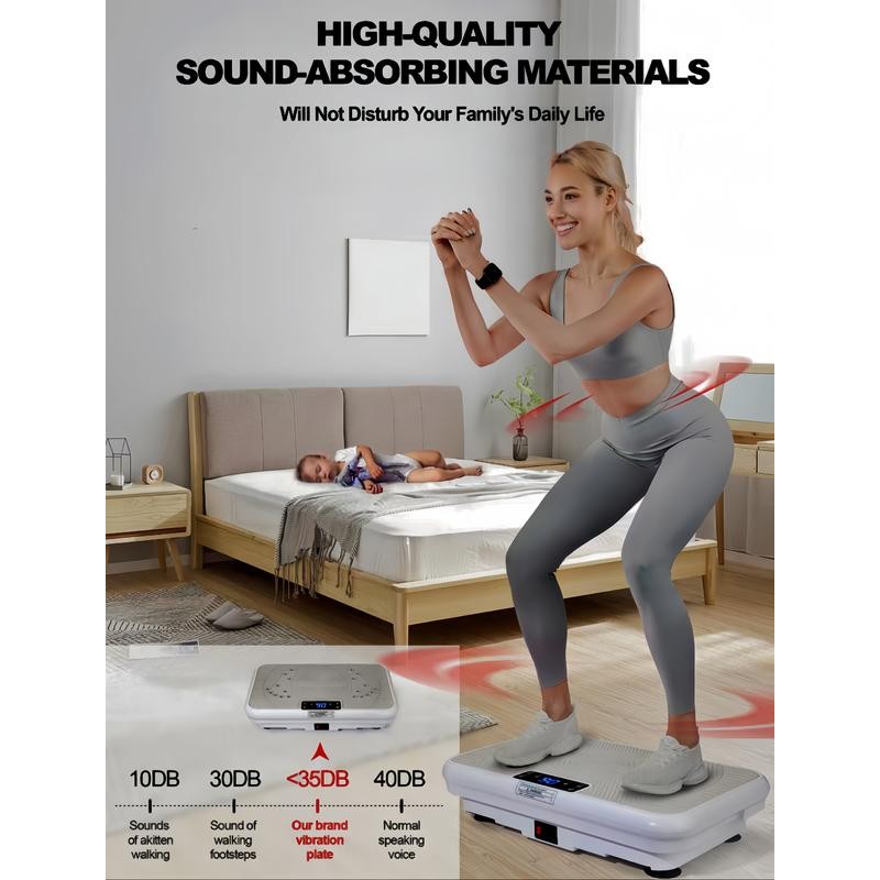 Smart Touch Display: The vibration platform features a touchscreen displaying time and speed, making it easy to monitor your workouts. You can adjust intensity and set exercise durations with the built-in timer for a customized experience. Designed for convenience, this power plate integrates seamlessly into your fitness routine, promoting a healthier lifestyle with minimal effort.