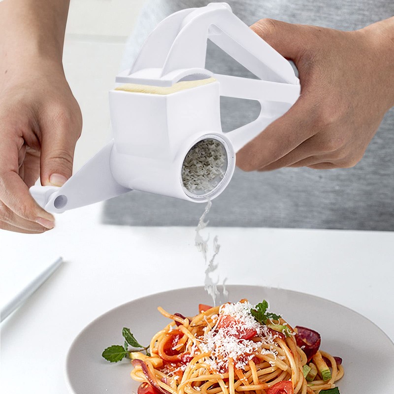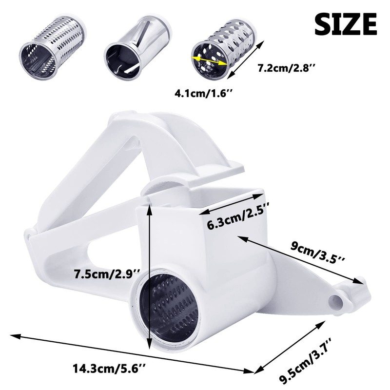 - 【Durable】This rotary grater features stainless steel grating drum & sturdy plastic housing that won't break under stress.Size:17.5 x 6.8 x 9cm.